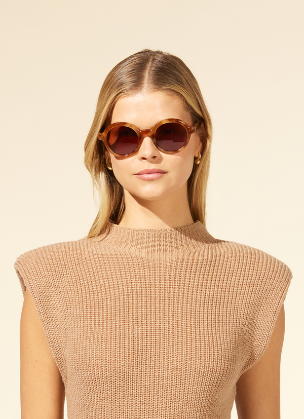 Julien Sun is a retro-inspired round acetate frame with a smooth, bubbly profile, echoing the bold style of the 60s. Its rounded endpieces and unique half-circle temples create a distinctive, playful look that blends vintage charm with contemporary flair. The frame is paired with 2B lenses for added style and function. Featuring GLCO's signature dual-plated rivet hinges, polished pins, and classic original core wire, and 100% UV protection.