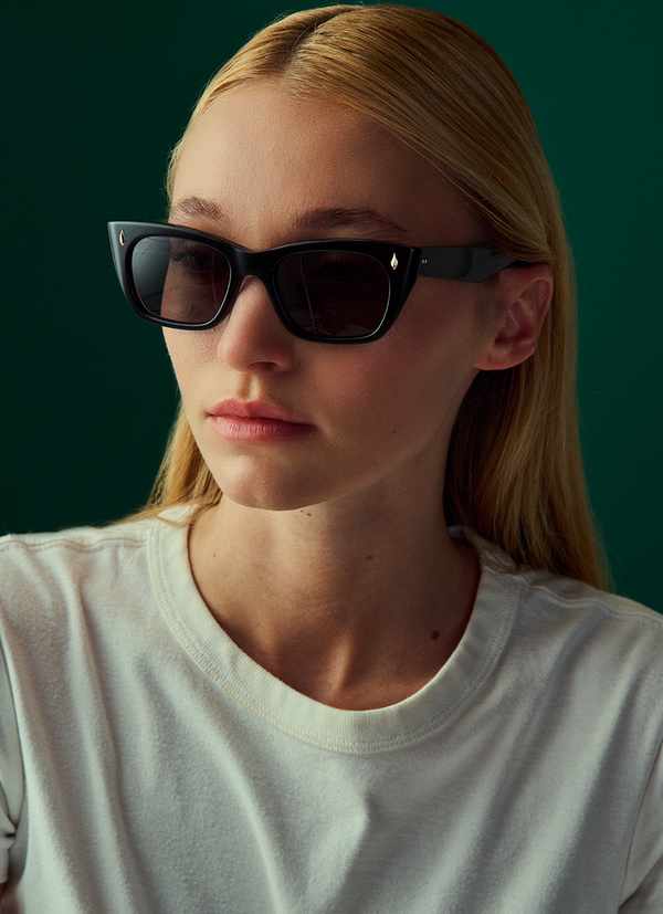 The counterpart to the Buchanan optical. A yang to the yin, packed with attitude and marked with the candle flame plaque, custom core wire, and an angular temple form.