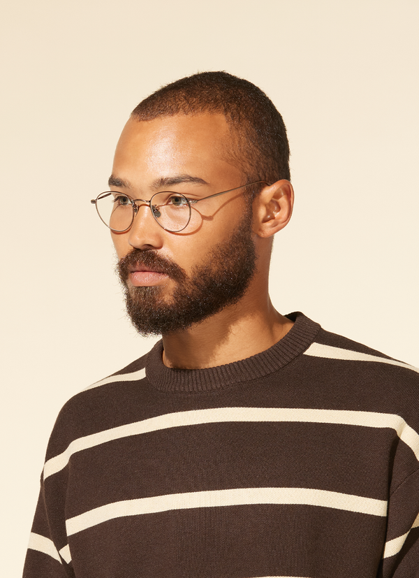 The William is a shallower, teardrop-shaped, P3 metal optical frame. Offering a refined take on classic style, William is equipped with intricate new bridge filigree and end piece detailing, plus all-metal temples. Screw-in titanium nose pads ensure a perfect fit.